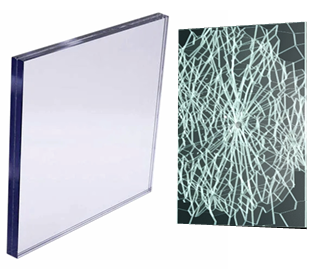 Laminated glass is a type of safety glass that holds together when shattered. In the event of breaking, it is held in place by an interlayer, typically of polyvinyl butyral (PVB) or ethylene-vinyl acetate (EVA), between its two or more layers of glass.The interlayer keeps the layers of glass bonded even when broken, and its high strength prevents the glass from breaking up into large sharp pieces.